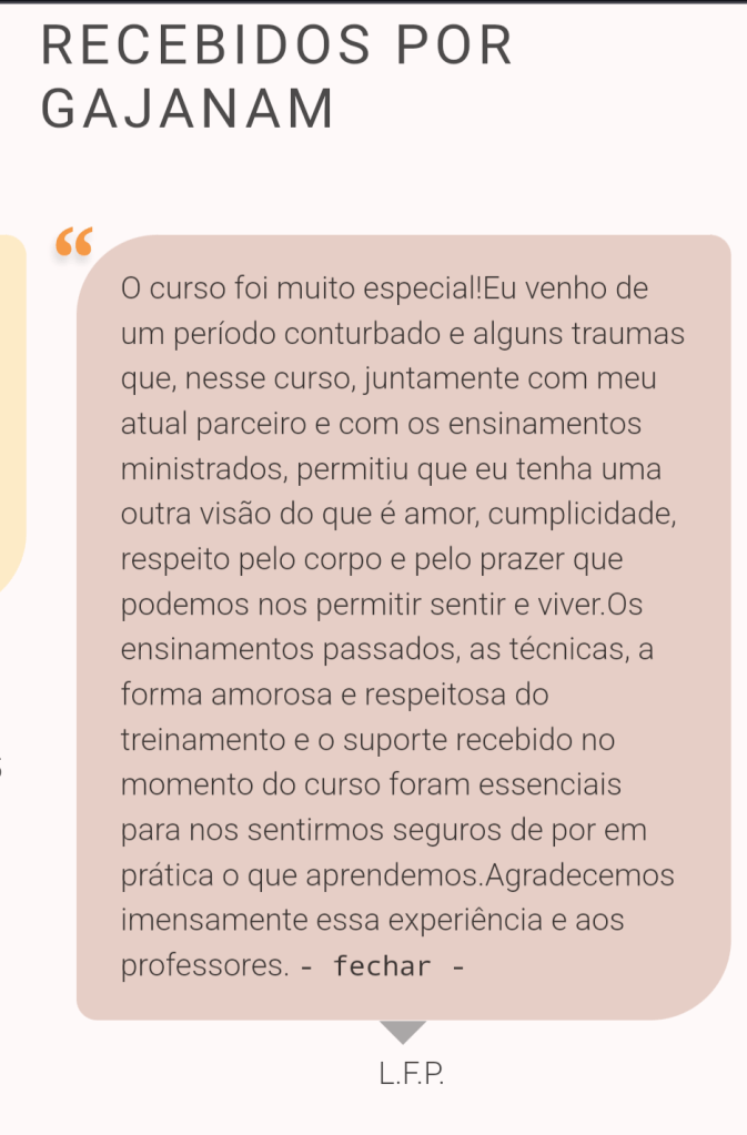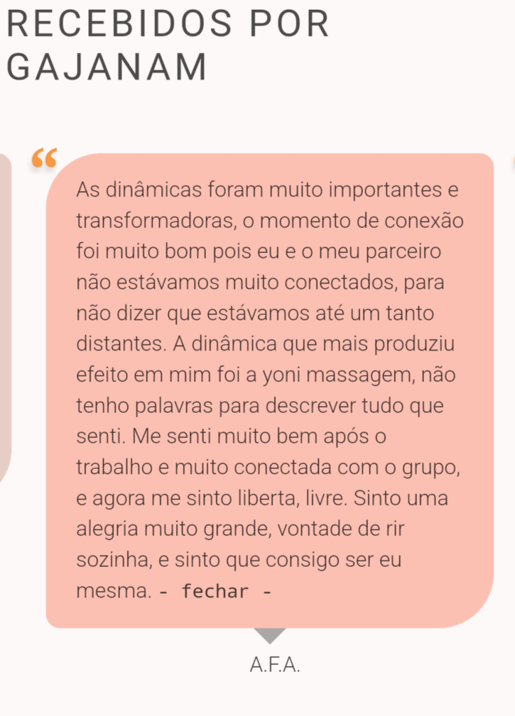 Durante as práticas, nada é obrigatório, não há imposições. Cada um tem a liberdade de ir no seu próprio ritmo, na medida em que se permite fazer. Cada casal, cada pessoa, no seu tempo, respeitando os seus limites.